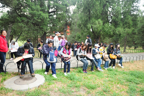 实习期间,大家主要考察了颐和园,北京植物园,朝阳公园,奥林匹克公园,承德避暑山庄等8处具有代表性的园林绿地。在实习过程中,廖老师为同学们详细讲解了园林植物的特性、配置、造型和传意等方面,同时介绍了各公园的总体规划设计理念及特点,对于设计中的不足,给同学们点出,并和同学们一起探讨。同学们通过做实习笔记,拍照,现场速写等方法对实习内容作了详细记录。晚上,同学们认真整理当天实习笔记。