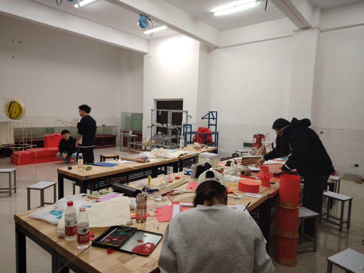 图为2023级风景园林班设计小组搭建现场 摄影:王琪