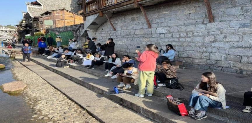 为进一步提升风景园林专业员工的专业认知与实践能力,2023年3月11日至3月14日,学院2021级风景园林班在刘清波、袁水清老师的带领下,赴湘西凤凰古城开展了美术写生实习。