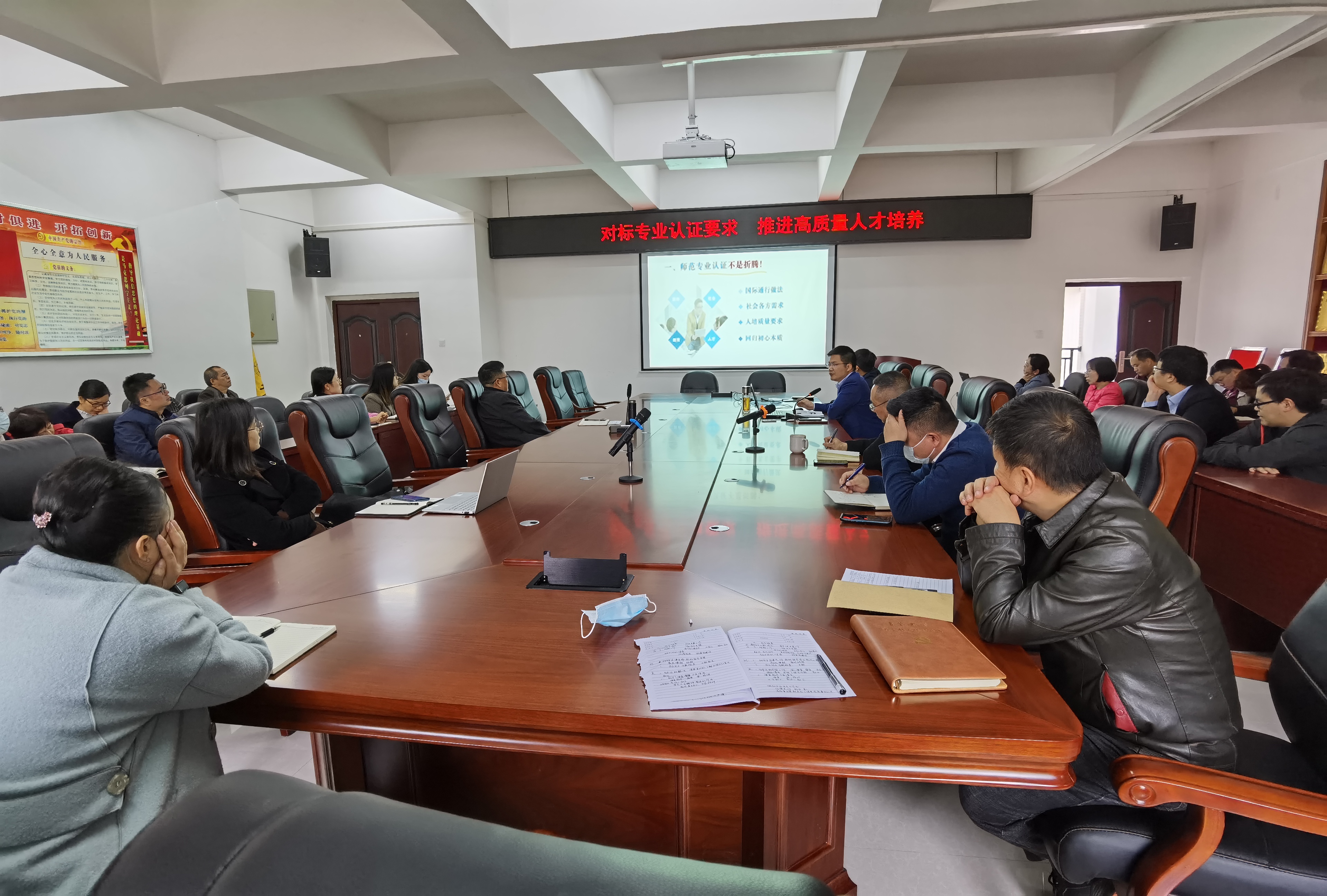 2022年11月15日下午2:30,伟德国际1949官网土木工程与建筑学院于院会议室,以“对标专业认证要求,推进高质量人才培养”为主题召开专业认证专题会议。会议由公司党委书记向成绪同志主持,吴吉林经理主讲,其他公司党政领导和全体教师参加了会议。