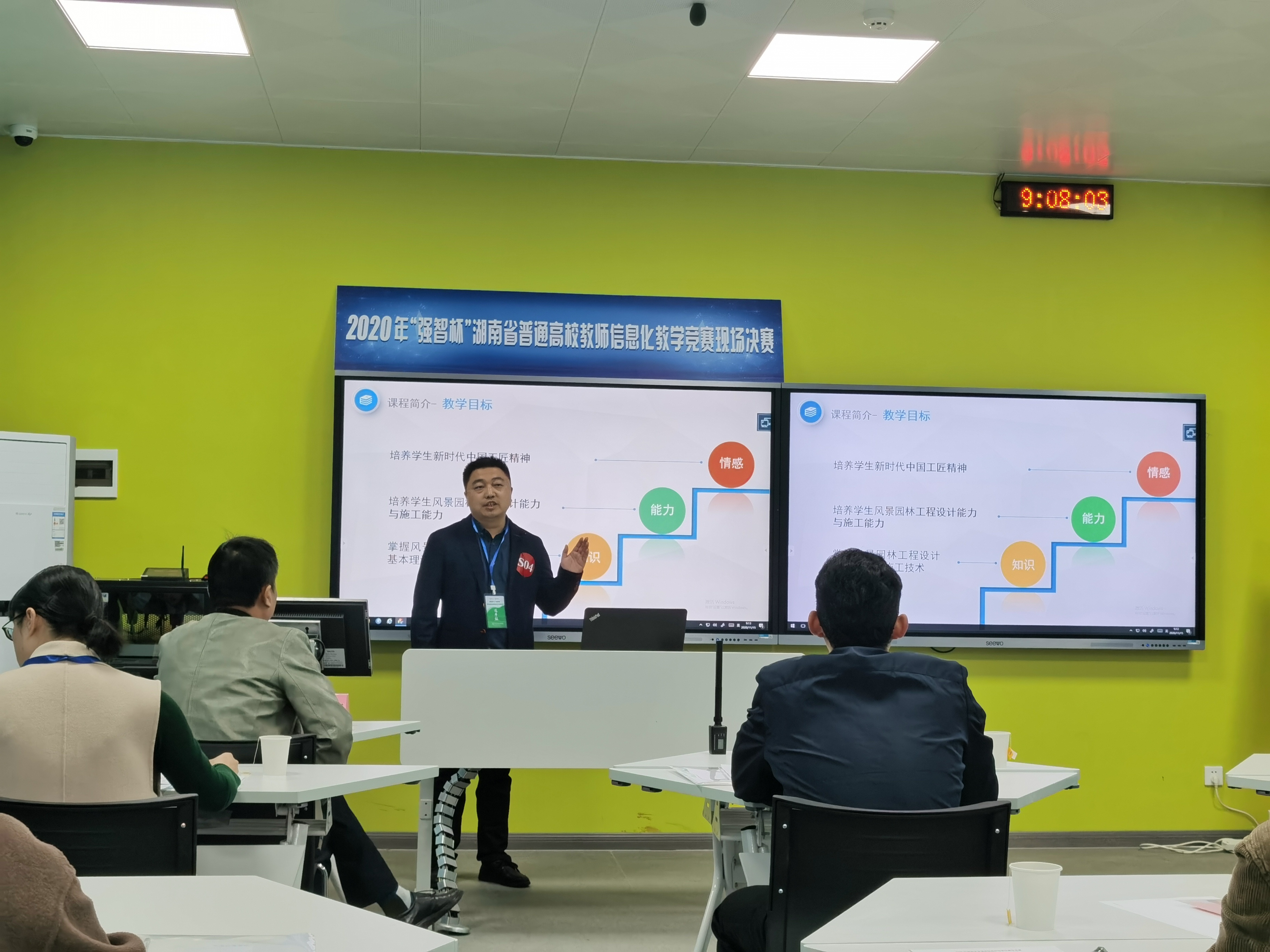 11月15日,由湖南省教育厅主办,湖南省高等教育学会教育技术专业委员会承办,长沙学院协办的2020年“强智杯”湖南省普通高校教师信息化教学竞赛现场决赛暨信息化教学改革成果交流研讨会在长沙举行,来自全省本科高校的84名优秀教师参加了本次决赛。经过激烈的角逐,公司孙青老师的参赛课程“基于虚拟仿真的《风景园林工程》信息化实训教学”获得实践竞赛组一等奖。