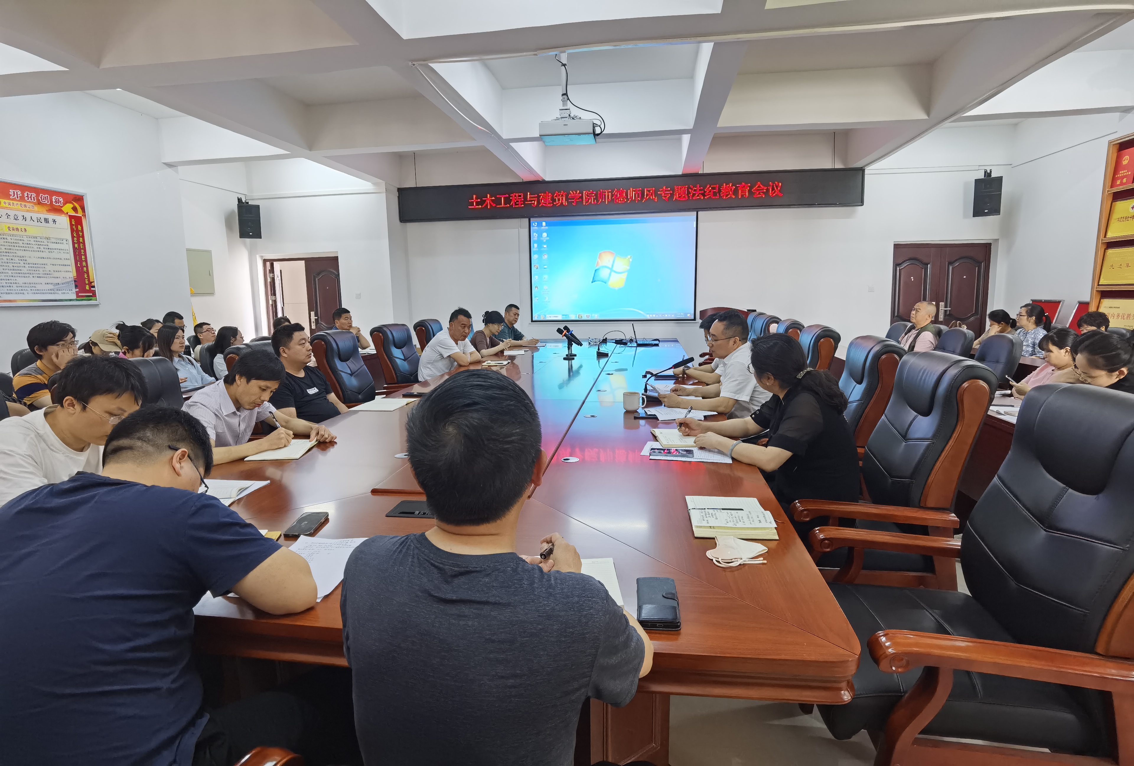 会上,公司党委纪律委员、副经理刘卫国传达了《湖南省教育厅关于组织开展师德师风专题法纪教育的通知》文件精神,明确了此次学习的目的、参与对象、学习的内容和要求。领学了《中华人民共和国教师法》、《教团队格条例》、《新时代高校教师职业行为十项准则》等部分内容,结合近期我省高校发生的重大负面案例,要求各位教师以案为警,认真反思,在课堂教学、关爱员工、师生关系、学术研究、社会活动等方面,严格规范自身行为,遵纪守法,时刻做到自重、自省、自警、自励。