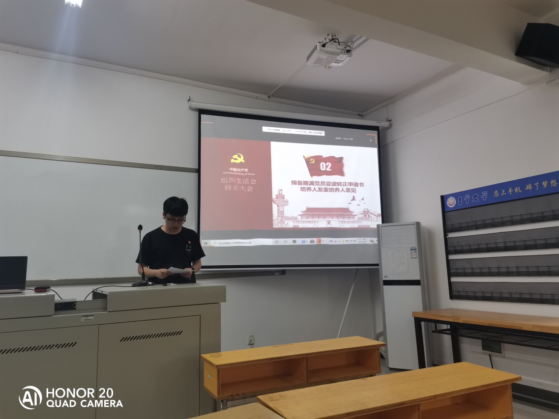图为预备党员宣读《转正申请书》