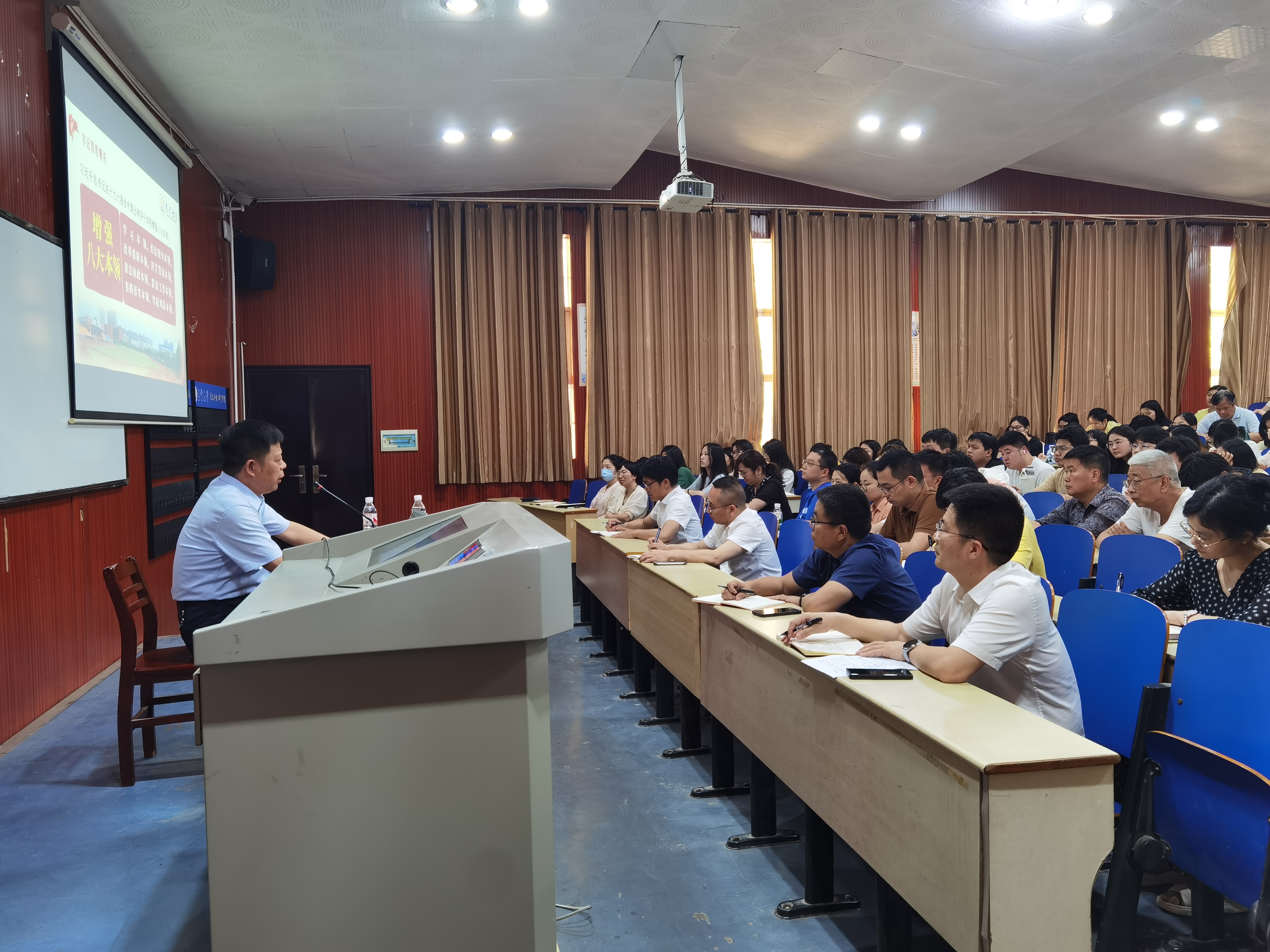 为深入贯彻中央八项规定精神学习教育要求,引导公司党员干部锲而不舍加强作风建设,以优良的作风促进师德师风和学风建设,推动学院各项工作高质量发展,5月20日,公司党委委员、纪委书记刘启定以《严守纪律规矩 严守师德规范 做党和人民满意的好干部 好老师》为题,为学院全体师生党员讲授专题党课,公司党委副书记、经理吴吉林主持。