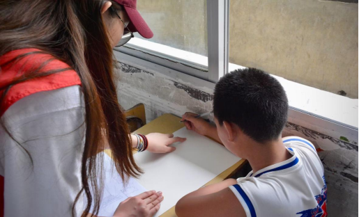 图为助教辅导小朋友作业。中国青年网通讯员 马凯煜 供图